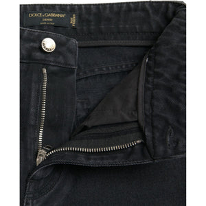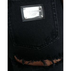 Dolce & Gabbana Black Cotton High Waist Tattered Denim Jeans