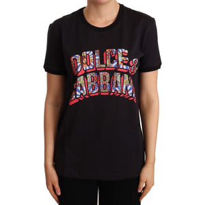 Dolce & Gabbana Black Cotton Large Print Top Crewneck T-shirt
