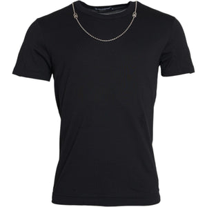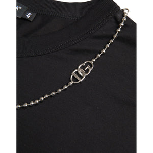 Dolce & Gabbana Black Cotton Silver Chain Short Sleeve T-shirt