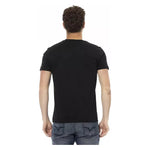 Elevate your everyday ensemble with this sleek, Trussardi Action tee. Boasting a sharp front print, this black T-shirt is the epitome of bold street fashion. Crafted for the modern man, its short sleeves and classic round neck serve up comfort without compromising on style. Get ready to seize the streets with unstoppable charisma.