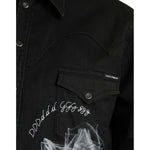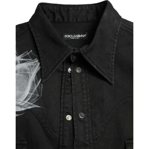 Dolce & Gabbana Black Floral Cotton Collared Dress Shirt