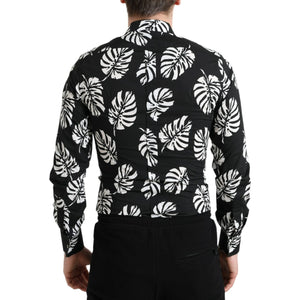 Dolce & Gabbana Black Leaf Cotton Men Formal GOLD Dress Shirt