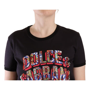 Dolce & Gabbana Black Logo Print Cotton Crew Neck Tee T-shirt