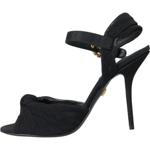 Dolce & Gabbana Black Suede Embellished Heels Sandals Shoes