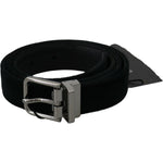 Dolce & Gabbana Black Velvet Leather Silver Buckle Belt