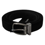 Dolce & Gabbana Black Velvet Silver Tone Metal Buckle Men Belt