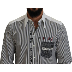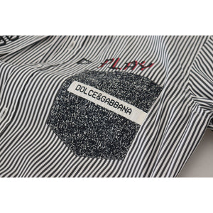 Dolce & Gabbana Black White Striped Printed Casual Cotton Shirt
