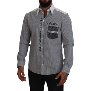 • Dolce & Gabbana Black White Striped Printed Casual Cotton Shirt