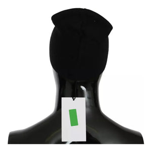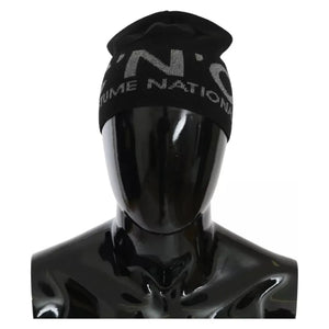 Costume National Black Wool Blend Branded Beanie Hat