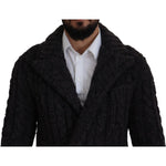 Dolce & Gabbana Black Wool Knit Double Breasted Coat Jacket