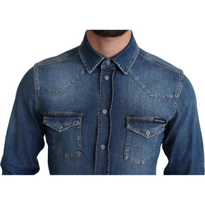 Dolce & Gabbana Blue Cotton Stretch Long Sleeves Denim Shirt