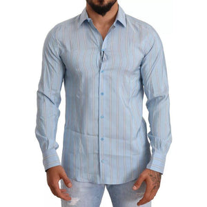 Dolce & Gabbana Blue Striped Silk Formal Dress MARTINI Shirt