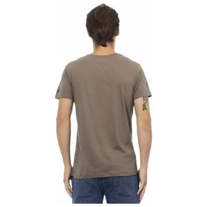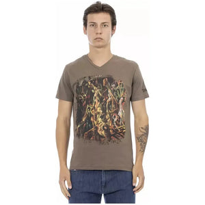 Elevate your wardrobe with the impeccable style of Trussardi Action. This chic short sleeve T-shirt, with its sharp V-neck and dynamic front print, is the epitome of casual sophistication. Crafted from a luxurious blend of cotton and viscose, it offers both comfort and durability. Boasting a rich brown hue that complements any ensemble, this garment is a testament to your bold and trendy fashion sense.