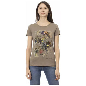 Step into the effortless elegance of Trussardi Action with this chic short sleeve brown T-shirt. Its round neck complements the striking front print, embodying both comfort and style. Crafted from a premium blend of cotton and viscose, this top offers breathability and a soft touch, making it an essential addition to your trendy wardrobe. Perfectly pairing with denims or skirts, it’s a versatile staple that speaks volumes of its origins from BD with bold confidence.