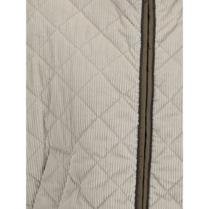 Brunello Cucinelli’s Corduroy quilted Jacket combines fine materials such as cotton and cashmere with refined country inspiration. The short, wide sleeves are ideal for creating elegant overlays, while the front zipper closure completes the design with practicality and style.