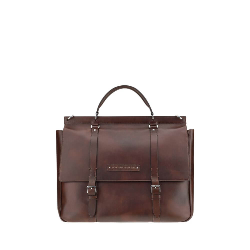 Brunello Cucinelli’s Leather Travel Bag is a sophisticated and functional accessory, ideal for travel or as a weekend bag. Featuring a flat leather handle, the front flap closure and two adjustable straps add a touch of practicality and style. The adjustable and removable shoulder strap allows you to adapt it to your needs, while the brand’s signature leather tag affixed to the front enhances its authenticity. On the back, a zippered welt pocket provides additional space for essentials, making this bag a perfect balance of elegance and functionality.