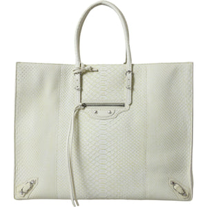 Balenciaga White Yellow Exotic Skin Leather Shopping Tote PAPIER Bag