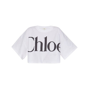 white/grey cotton cropped logo print to the front drop shoulder round neck three-quarter length sleeves straight hem Logo cotton cropped t-shirt Size and Fit - This piece fits true to size. We recommend you get your regular size. Model is 1,75m / 5ft 8in wearing size S