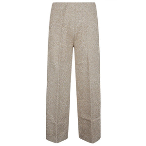 Pantalone oro, vita elastica, gamba larga. Viscose wide leg trousers Size and Fit - This piece fits true to size. We recommend you get your regular size. Model is 1,75m / 5ft 8in wearing size 40 (IT)