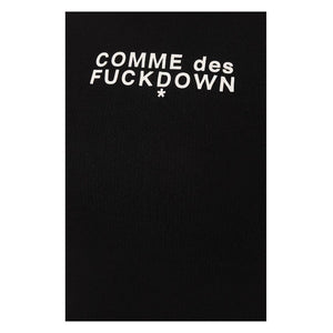 Infuse your wardrobe with the edgy appeal of ‘Comme Des Fuckdown.’ Captivating and daring, this cropped top in classic black is an emblem of urban chic. Crafted to turn heads, the ribbed cotton blend contours your silhouette while the bold rubber logo print stands as a declaration of your fearless fashion sense. Perfect for those who dare to stand out.