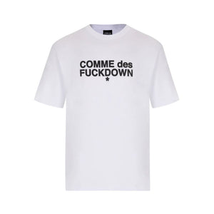 Comme Des Fuckdown white cotton jersey t-shirt with front print