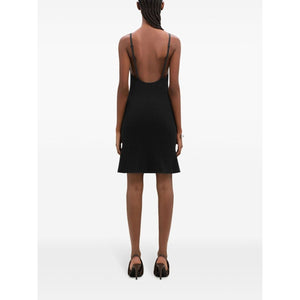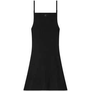 black ribbed knit logo tag square neck open back adjustable spaghetti straps thigh-length straight hem Logo mini dress Size and Fit - This piece fits true to size. We recommend you get your regular size. Model is 1,75m / 5ft 8in wearing size S