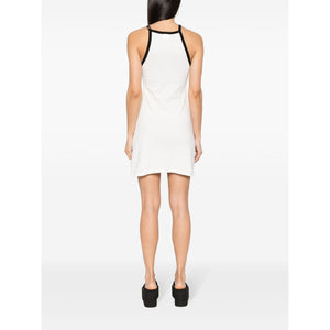 white/black cotton soft jersey halterneck contrasting border buckle-detail shoulder strap sleeveless appliqué logoat the chest internal logo tag thigh-length straight hem Buckle contrast short dress Size and Fit - This piece fits true to size. We recommend you get your regular size. Model is 1,75m / 5ft 8in wearing size S