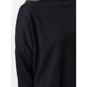 navy cotton knitted construction ribbed detailing tonal stitching boat neck three-quarter length sleeves flared design Cotton boat-neck sweater Size and Fit - This piece fits true to size. We recommend you get your regular size. Model is 1,75m / 5ft 8in wearing size UNI