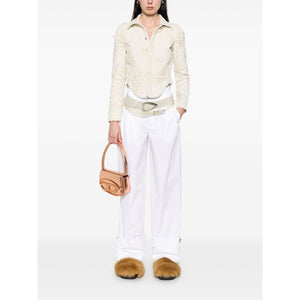almond beige concealed front press-stud fastening distressed effect long sleeves curved hem Denim cotton shirt Size and Fit - This piece fits true to size. We recommend you get your regular size. Model is 1,75m / 5ft 8in wearing size S