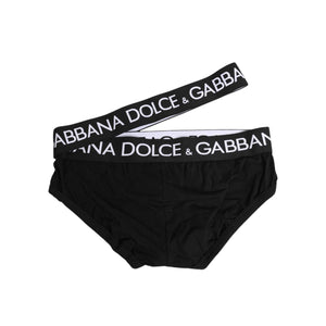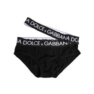 Dolce & Gabbana Black Cotton Elastic Logo Waistband Swimwear