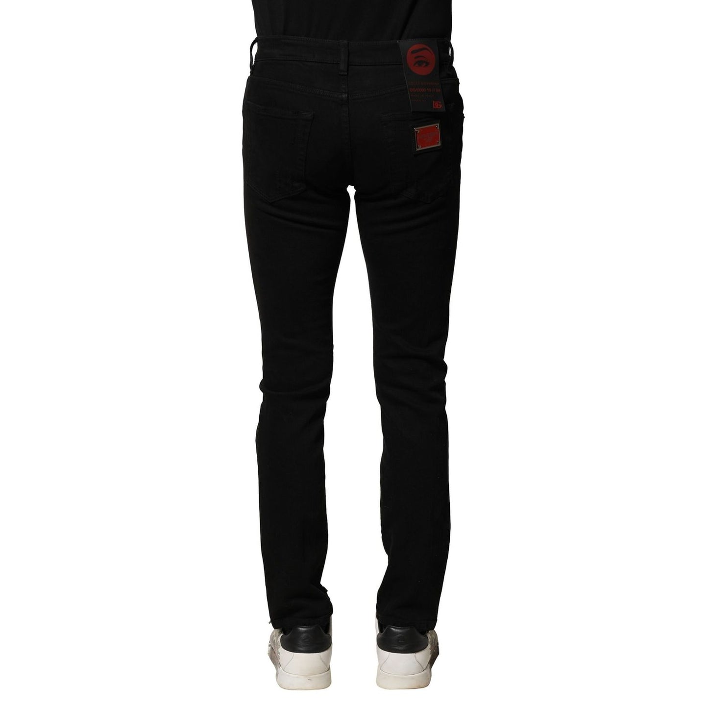 Dolce & Gabbana Black Cotton Logo Plaque Slim Denim Jeans
