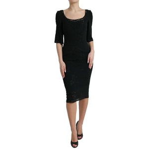 Dolce & Gabbana Black Floral Lace Viscose Bodycon Midi Dress