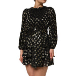 Dolce & Gabbana Black Gold Polka Dot Silk Brocade Mini Dress