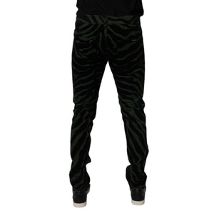 Dolce & Gabbana Black Green Stripes Cotton Skinny Denim Jeans