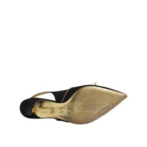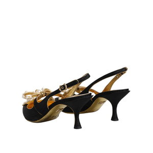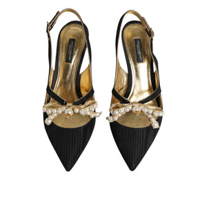 Dolce & Gabbana Black Leather Faux Pearls Slingbacks Shoes