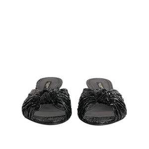 Dolce & Gabbana Black Leather Heels Slides Sandals Shoes