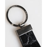 Dolce & Gabbana Black Leather Logo Metal Ring Keychain Holder Men Keyring