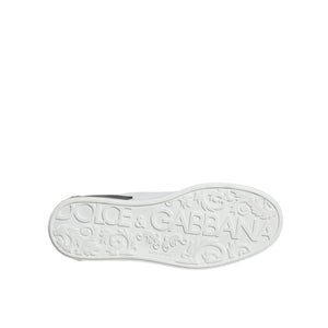 Dolce & Gabbana Black Leather Logo Portofino Sneaker Shoes