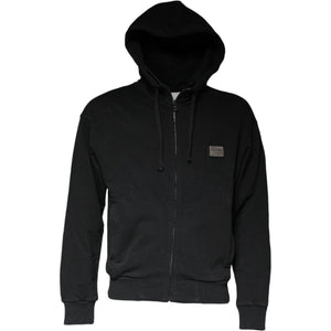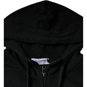Dolce & Gabbana Black Logo Plaque Hooded Full Zip Sweater