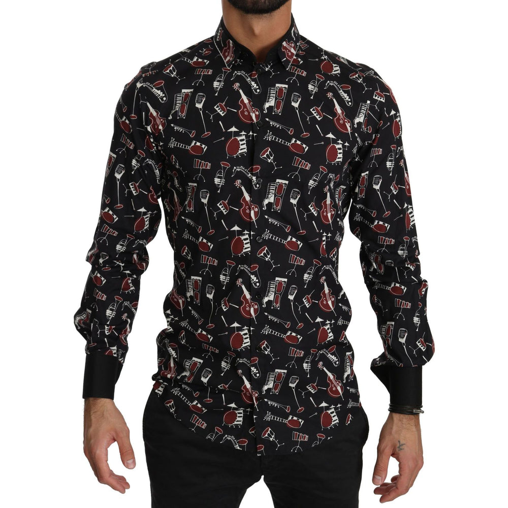 Dolce & Gabbana Black Musical Instrument Slim fit Shirt