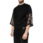 Dolce & Gabbana Black Nylon Floral Lace Crew Neck T-shirt