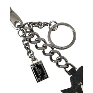 Dolce & Gabbana Black Prince Studs Logo Silver Brass Keychain Keyring