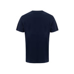 In blue cotton, crew neck, short sleeves, logo printed on the front