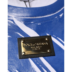 Dolce & Gabbana Blue White Cotton Logo Plaque Women Tank Top