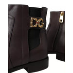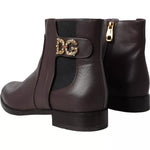 Dolce & Gabbana Brown Leather AMORE Flats Ankle Boots Shoes