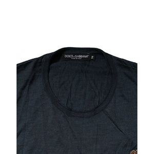 Dolce & Gabbana Dark Blue Silk Logo Patch Crew Neck T-shirt