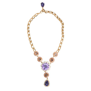 Dolce & Gabbana Gold Brass Crystal Pearl Purple Floral Pendant Jewelry Necklace