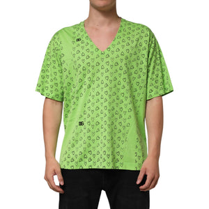 Dolce & Gabbana Green V-Neck DG Logo Heart Print T-shirt