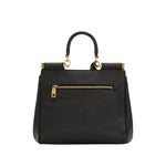 black gold-tone hardware detachable shoulder strap lock and key detail top handle logo plaque Sicily soft leather handbag