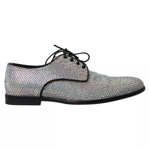 Dolce & Gabbana Silver Leather Rhinestones Derby Shoes